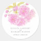Belle aquarelle double fleur rose ornementale mariage autocollant de fleurs de cerisier. Personnalisez avec le nom et la date du mariage de votre mariée et de votre mariée. Partie du mariage de fleurs d'aquarelle rose stationnaire. © Original watercolor art and design par Sarah Trett. www.sarahtrett.com pour www.mylittleedenweddings.com