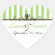 Ce sticker mariage en forme de coeur de pomme vert et blanc rayé avec rouleaux marron correspond au faire-part de mariage ci-dessous, et est une façon parfaite d'envoyer une invitation magnifiquement coordonnée, ou vous pouvez l'utiliser pour attacher à vos faveurs de mariage. D'autres formes et tailles sont disponibles.