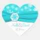 Cet autocollant de mariage ou sceau d'enveloppe en forme de coeur turquoise et blanche a un ruban d'aqua FAUX et un médaillon de flocons de neige sur lui. Il correspond au faire-part de mariage ci-dessous. Ce serait une belle façon de sceller vos invitations de mariage sortantes, ou d'orner vos faveurs de mariage avec.