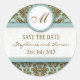 Autocollant de mariage monogramme Brown et bleu damassé pouvant servir de sceau d'invitation.