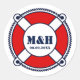 Autocollant de mariage monogramme de bouée de secourt nautique. Jolie fête maritime à thème privilégier les autocollants et les scellés d'enveloppe monogrammés avec le nom lettres initiales du couple marié et marié plus la date du mariage. Couvercle de sauvetage bouée de sécurité avec corde en bleu marine rouge et blanc. Icône mignonne pour le mariage de destination de plage près de l'océan ou de la mer. Aussi agréable pour des vacances de croisière en lune de miel, douche nuptiale, fiançailles, anniversaire, baby shower, anniversaire et autres occasions. Conception amusante de ceinture rouge pour marin, skipper, capitaine de bateau, etc.