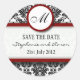 Autocollant monogramme mariage damassé noir et bordeaux qui peut être utilisé comme sceau d'invitation.