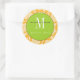 Autocollant Mariage Orange Damask Green Monogram