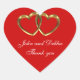 L'autocollant mariage pour le Merci favorise les coeurs d'or 3D sur le rouge personnalisé avec les noms de mariée et mariée. Personnalisable, modifiez la couleur de l'arrière - plan, la police et la couleur pour qu'elles correspondent à votre jeu de couleurs.