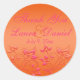 Ce floral de 1,5" de diamètre chaud rose et orange remerciant autocollant / enveloppe joint l'invitation et d'autres éléments présentés ci-dessous. Il y a aussi un affranchissement correspondant pour vous permettre de poster un carte de remerciements magnifiquement coordonné. Vous pouvez modifier le texte pour dire ce que vous voulez, et vous pouvez également changer la taille de l'autocollant à 3 pouces de diamètre, ce qui serait idéal pour orner vos faveurs mariages/fêtes. Si vous avez besoin d'autres articles correspondants dans ce design, s'il vous plaît envoyez-moi votre demande par courriel à niteowlstudio@gmail.com.