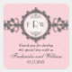 Un autocollant qui prend de l'influence de l'époque Art Déco. Un groupe orné, qui ressemble à une montre victorienne, présente un médaillon tenant le monogramme du couple. Ajoutez ou réduisez l'espace entre le premier et le dernier initiales pour équilibrer avec le monogramme central. L'arrière - plan rose imprime un motif subtil comme filigrane. Un look classique qui donne l'ambiance à n'importe quel mariage. Ajoutez un message spécial à vos invités en dessous. Utilisez comme enveloppe ou scellés de paquet, une faveur amusante ou utilisez-les pour fermer les sacs de faveur. Disponible en couleurs alternatives avec des produits correspondants.