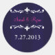 fraise bleu marine fleur de lis bordure enveloppe personnalisée autocollant et faveurs de mariage autocollant