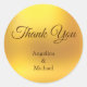 Élégant autocollant rond Merci au look métallisé doré. Texte prêt à être personnalisé. Idéal pour emballer des cadeaux, sceller des enveloppes, des boîtes de faveur et pour tout le reste. Un détail de remerciement fin que tout le monde aimera.