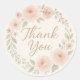 Un bel autocollant rond avec des fleurs élégantes à l'aquarelle dans des tons de rose et de vert doux, entourant l'écriture manuscrite « Merci ». Parfait pour sceller des enveloppes, emballer des commandes de petites entreprises, des faveurs de mariage ou des boîtes-cadeaux. Ce design ajoute une touche délicate et professionnelle à toute occasion — idéal pour les boutiques, les événements ou les produits faits à la main.
