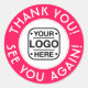 Ajoutez une touche de professionnalisme à votre emballage avec ce design élégant et rond d'autocollant de remerciement personnalisé ! Avec un thème rose chaud et blanc élégant, cet autocollant est parfait pour exprimer votre gratitude à vos clients. Personnalisez-le en ajoutant votre logo et votre texte personnalisé pour le rendre unique. Idéal pour les entreprises, et les commandes en gros sont disponibles sur https://www.zazzle.com/business/bulk?fbclid=IwAR3MBTYNaCv80Q7Qgeasu2uPQXTo6pJ1dZwJc-4QsB2OXJsdNNIOkLZRwio. Découvrez plus de designs sur Bunny Prince Design, ou contactez-nous si vous avez besoin d'un design personnalisé qui n'est pas actuellement en magasin.