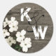 Joli autocollant mariage / enveloppe scellée, avec une photographie améliorée d'une clôture en bois rustique, avec de jolies fleurs de bois de chien blanc. Grand monogramme blanc et noir personnalisé est prêt à être personnalisé, avec les initiales de la mariée et du marié. Parfait comme enveloppes scellées pour vos invitations de mariage ou comme scellés pour les invités mariages sacs cadeaux. Produits correspondants disponibles.