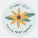 Cet autocollant mignon présente une peinture à la gouache d'un tournesol sur un fond bleu clair. Un message de remerciement personnalisable encadre la fleur en haut, et un nom personnalisable encadre le tournesol en bas. Ces autocollants de fleurs rustiques font un excellent accent avec la suite de shower de mariage fantaisiste Mason Jar et Wildflowers.