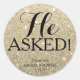 Stickers Fête des mariées simple avec Arrière - plan Parties scintillant. Une partie de ce qu'il a demandé, elle a dit oui ensemble. Voir l'autocollant correspondant ci-dessous. Changez les couleurs Arrière - plans ou textuelles pour convenir à votre occasion.