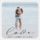 Autocollant personnalisé avec votre photo personnalisée et écriture élégante "amour" associé à vos propres monogrammes et date dans une police sans empattement.