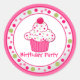 Joli autocollants de fête d'anniversaire, avec des graphiques adorables d'un cupcake, au milieu. Un cadre de pois blanc autour des bords et texte rose lisant Anniversaire fête finit cette fête délicieuse ou enveloppe scellée. Personnalisez le texte si vous voulez qu'il dise quelque chose de différent.