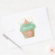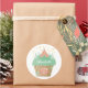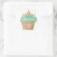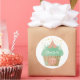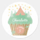 Un Glamping doux et chic, des filles camper, fête d'anniversaire autocollant personnalisé avec une tente dans une forêt d'arbres sous étoiles d'or, le tout sur un cupcake d'anniversaire.