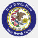 Cet autocollant personnalisé est décoré avec le Grand Sceau de l'Illinois qui peut être customisé avec un choix de mots ci-dessus et ci-dessous qui vous permettent de le personnaliser avec le nom d'une personne, d'un lieu, d'une position, etc.