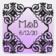 Stickers Personnalisés en violet et Mariage damassé noir Date & Initiales
