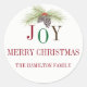 La JOIE colorée avec des branches de pin, des cônes de pin et des baies de vacances a personnalisé l'autocollant rond classique.