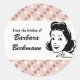 Une illustration vintage d'une femme pointant contre un arrière - plan de pois et de pois gris constitue la base visuelle de ce mignon autocollant. Utilisez l'expression "De la cuisine de" ou faites-la vous-même et ajoutez votre nom (ou celui d'une autre personne). Inscrivez ci-dessous votre nom de plat. Disponible dans d'autres modèles et combinaisons de couleurs. Contactez-moi par l'intermédiaire de ce magasin si vous êtes intéressé par une combinaison de couleurs ou un arrière - plan différent.