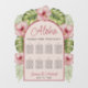 Un tableau de sièges à fleurs tropicales, approprié pour un mariage/luau hawaïen. Le texte se trouve à l'intérieur d'une arche rose aux bordures rouges bordeaux. Autour de l'arc, fleurs tropicales et feuilles - monstère, palmier feuille et hibiscus rose - peints en aquarelle. Le titre "Aloha" et les noms sont écrits en écriture manuscrite, dans un rouge bordeaux semblable en couleur avec le centre des fleurs d'hibiscus, le reste du texte est noir (tous les casquettes). Les feuilles tropicaux et la fleur sont de l'aquarelle, peinte par laomao_art de Pixabay, libre pour un usage commercial.