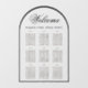 Un simple tableau de sièges transparent à l'intérieur d'une arche moderne. Le texte et le cadre sont noirs. L'accueil est écrit dans un script élégant. Il peut être utilisé pour le mariage, mais aussi pour d'autres occasions.