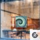 Autocollant Pour Fenêtre Abstraite spirale d'art fractal bleu turquoise ora