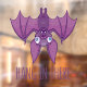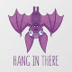 Dessin animé vectoriel d'une chauve-souris vampire accrochée à l'envers avec la phrase Hang In There. Mots-clés : animal, chauve-souris, vol, vol, halloween, mammifère, effrayant, éffrayant, vampire, aile, violet, inspiration, mignon, idiot, motivation, motivation, aide, pendre, inspiration