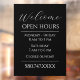 Panneau Cling de fenêtre Entreprise et Heures Ouverte. Polices Serif Élégantes. Grand type pour une lecture facile. Facile à personnaliser pour les besoins de votre entreprise.