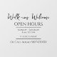 Panneau Cling de fenêtre Entreprise et Heures Ouverte. Polices Serif Élégantes. Grand type pour une lecture facile. Facile à personnaliser pour les besoins de votre entreprise.
