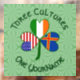 Les drapeaux des îles Åland, de l'Irlande et des États-Unis d'Amérique se trouvent dans ce shamrock. Le shamrock a été conçu pour célébrer la Saint Patrick, les 4 juillet et les fêtes d'Ålander. Au-dessus des mots TROIS CULTURES montrent en vert foncé, circulaire, des lettres de style celtique. Ci-dessous, dans la même lettre, les mots ONE YOURNAME. Ajoutez votre nom à l'endroit approprié pour personnaliser. Pour un cadeau personnalisé, ajoutez le nom de quelqu'un d'autre. L'arrière - plan est un carré vert pâle et brillant.