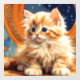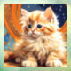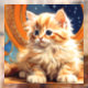 Cling de fenêtre avec chaton orange dans le style Art Nouveau d'Alphonse Mucha. Ce chaton mignon aux yeux bleus vous regarde adorablement sur fond de ciel nocturne plein d'étoiles. Un cadeau merveilleux pour les amoureux de les chats et les collectionneurs Art Nouveau !