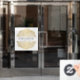 Un motif de faux anneaux d'arbre en or est combiné avec votre nom ou le nom de votre entreprise pour une esthétique élégante sur ce sticker personnalisé pour fenêtre. Art et design © Studio de design 1201AM | www.1201am.com