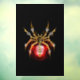 Araignée mécanique à vapeur avec or, engrenages en laiton et lampe en verre rouge sur un arrière - plan noir. Style Steampunk.