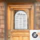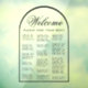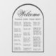 Un simple tableau alphabétique transparent à l'intérieur d'une arche moderne. Le texte et le cadre sont noirs. Le Welcome est écrit dans une calligraphie élégante. Les noms sont sur 3 colonnes.