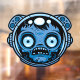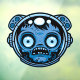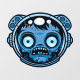 Illustration d'un astronaute zombie aux grands yeux portant un casque spatial avec un bouclier en verre fissuré dans les tons bleus. Mots clés : astronaute, cosmonaute, casque, zombie, espace, astronaute, monstre, cadet, cadet, mort