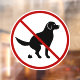 La silhouette noire originale de Destei d'un chien qui fait ses affaires. Le chien ressemble à un Golden Retriever et des races similaires avec des oreilles suspendues. Un symbole rouge no est placé sur le chien pour illustrer la politique "pas de caca de chien autorisé".