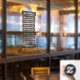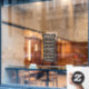 Autocollant de fenêtre d'heures d'ouverture à effet de latte par la Business Card Store.