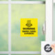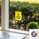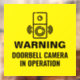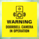 Un panneau de fermeture de fenêtre pour les ménages avec sonnette de porte intelligente. La conception comporte un graphique d'une caméra de porte avec le libellé "Avertissement Caméra de porte en fonctionnement". Un design accrocheur avec du texte noir sur un arrière - plan jaune.