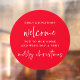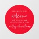Bienvenue à Home Names Joyeux Noël Blanc Cercle rouge. Pour souhaiter à vos invités un accueil chaleureux pendant la période des fêtes, en rouge et blanc festif. Vous pouvez modifier les couleurs de texte si vous le souhaitez via personnaliser plus loin, et également modifier la couleur du cercle. Bienvenue et Joyeux Noël sont dans un style manuscrit et personnalisent facilement le reste du texte.
