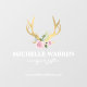 Une illustration de bois de cerf en or métallisé faux est combinée avec un bouquet de fleurs et le nom de votre entreprise pour offrir une esthétique bohème sur ce sticker de fenêtre personnalisé. Super signalétique pour les boutiques, salons, magasins de cadeaux, espaces éphémères, salons professionnels, et plus encore. Art et design © 1201AM Design Studio | www.1201am.com