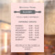 Bienvenue clients dans le style avec cette boulangerie Ouverture Heures Rolling Pin Rose Cling fenêtre - parfait pour les boulangeries, les pâtissiers et les artistes de gâteaux. Personnalisez-le avec votre nom d'entreprise et votre slogan pour créer un logo monogramme unique qui reflète votre marque. Ajoutez vos heures d'ouverture pour tenir les clients informés en un coup d'oeil. Facile à appliquer et à enlever, ce cling de fenêtre est un moyen chic et pratique d'améliorer votre vitrine avec une touche professionnelle.