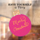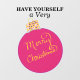 Joyeux Noël est écrit à la main en script couleur or. Boule de décoration ronde rose festive avec des accents de points polka violets, roses et blancs. Œuvre originale de TamiraZDesigns.