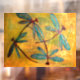 De superbes libellules ailées bleues se foulent sur un arrière - plan doux doré et marbré.