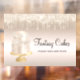 Élégant et chic panneau de fermeture pour boulangeries, créateurs et spécialistes de gâteaux mariages, pâtissiers et traiteurs événementiels. La fausse parties scintillant en or de champagne descend un arrière - plan en or à l'ombre avec l'illustration d'un magnifique gâteau mariage orné avec coordination de la parties scintillant en or givrage. Personnalisez avec votre nom d'entreprise dans un script élégant.