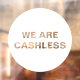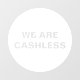 Panneau de fenêtre rond blanc pour les entreprises sans espèces avec le texte "nous sommes sans espèces". Idéal pour les magasins et les restaurants qui n'acceptent que les cartes de débit / crédit.