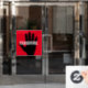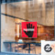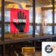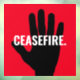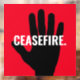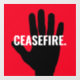 Cessez-le feu rouge blanc noir main en gras texte personnalisé anti-guerre fenêtre cling signe. Texte blanc, main noire, arrière - plan rouge. Texte entièrement personnalisable. Conflit Moyen-Orient / Gaza.