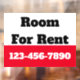 Ce panneau est de couleur rouge vif, noir et blanc. Vous pouvez modifier le texte pour répondre à vos besoins. Vous pouvez ajouter votre message personnalisé (affiché : Chambre à louer) et numéro de téléphone. Le haut est blanc avec du texte noir. Le bas est rouge vif avec du texte blanc pour votre numéro de téléphone ou texte personnalisé. Tout le texte peut être modifié ou supprimé.