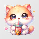 Autocollant Pour Fenêtre Chat Boire Boba Cute Bubble Thé