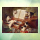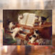 Cling de fenêtre avec peinture à l’huile de Carl Reichert Le considérant des chatons (1836-1918). Cinq adorables chatons noirs et blancs sont assis au sommet d'un piano. Un cadeau fantastique pour les amoureux de les chats et les amateurs d'art victorien.